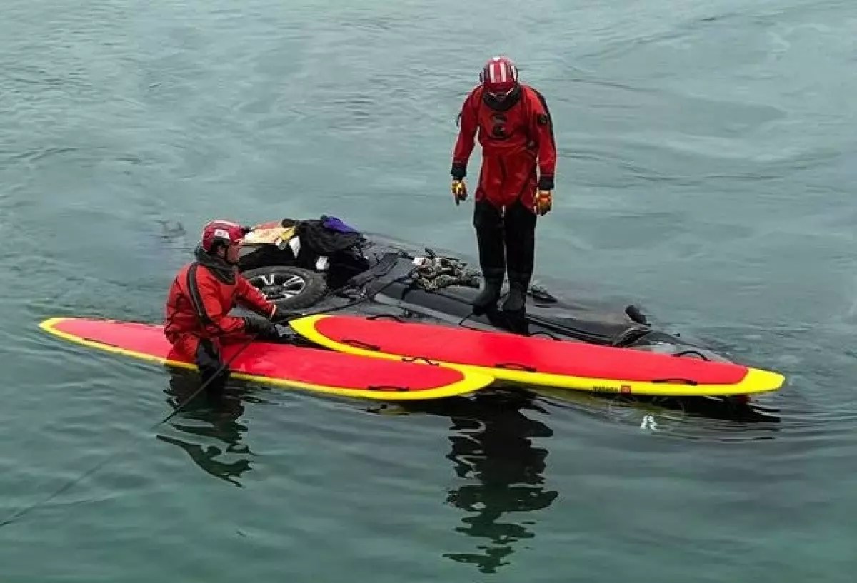 Minutes later, Huntington Beach Fire Department lifeguards went into the water and helped pull the driver to safety. He was taken to a local hospital with non-life-threatening injuries.